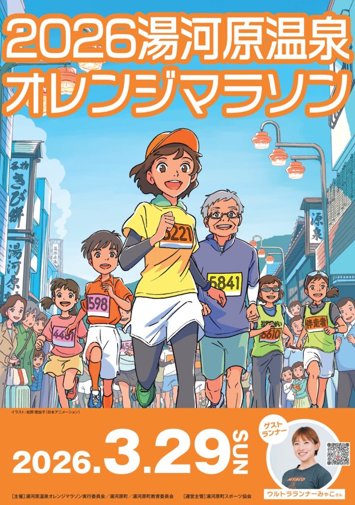日 時 令和8年3月29日㈰ (雨天決行) 開催されます! 歓 迎 挨 拶 午前9時40分 スター ト 午前10時 表 彰 式 午前10時20分(種目別に随時表彰) 会 場 湯河原町立湯河原小学校 種 目 3km・5km・10kmの部(24部門)
